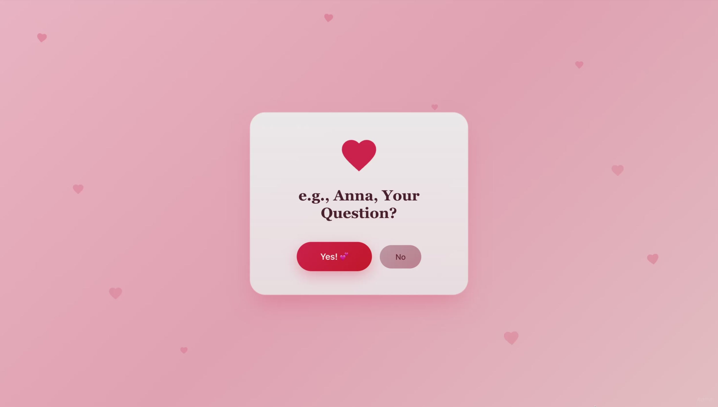 You’re purchasing a personalized website link that opens a special question page with an interactive Yes button and a surprise celebration page.